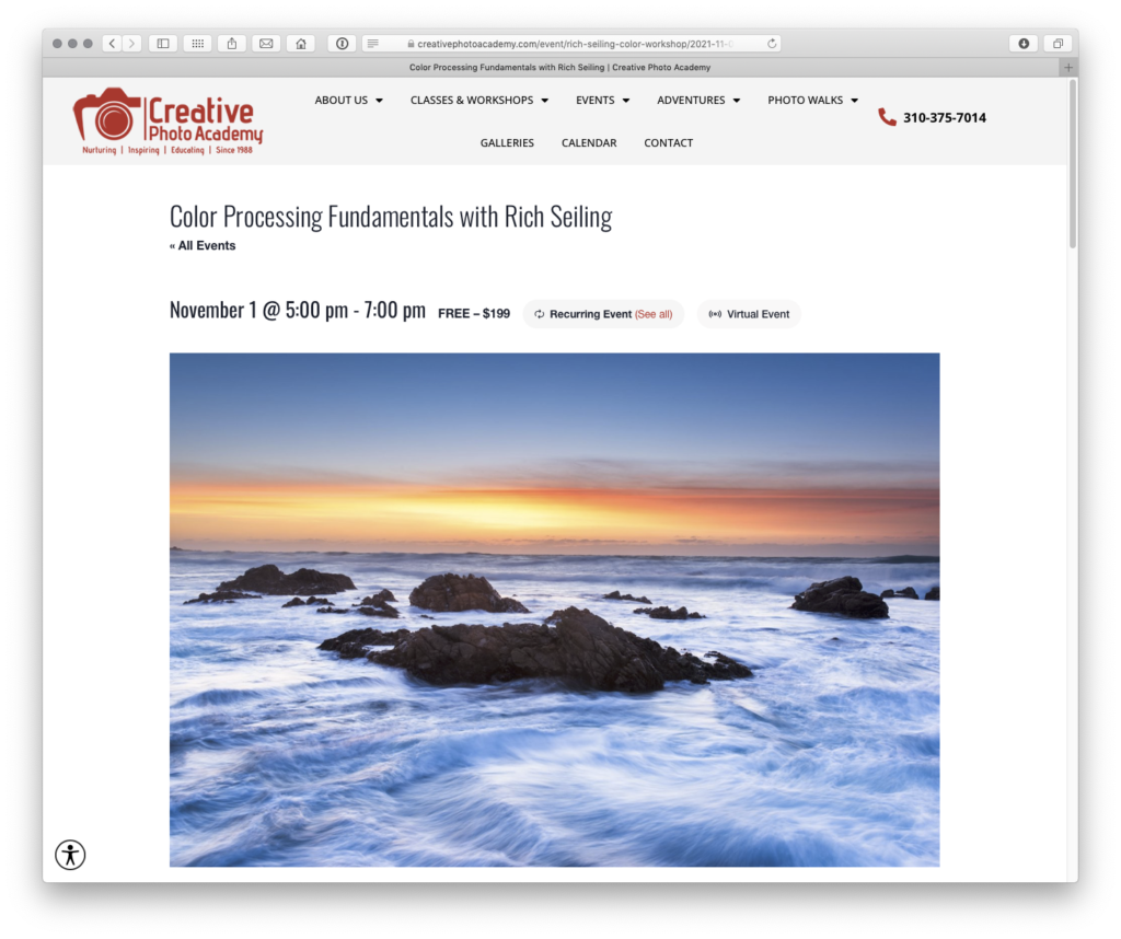Beautiful color photos come from understanding and controlling the fundamentals. Join Creative Photo Academy and Rich Seiling for this inspiring evening that will show you the techniques and thought processes Rich uses to create museum quality color photographs.