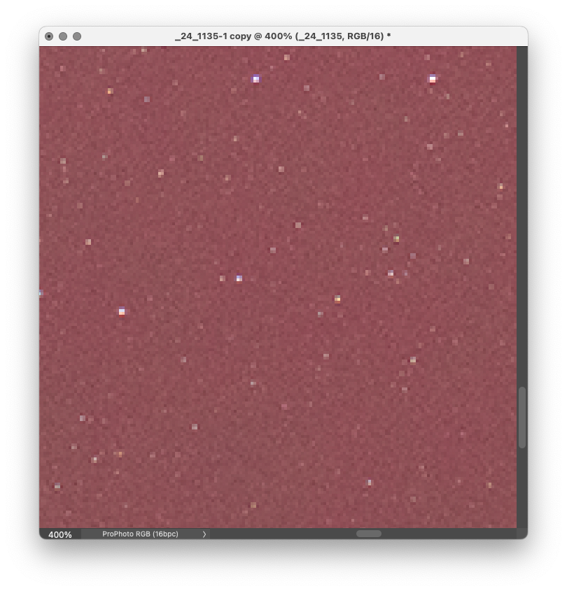 Most of the noise has disappeared. This is because of the way downsampling works. When you downsample, you are telling your software you don’t need all the pixels in the original, so get rid of some of them.