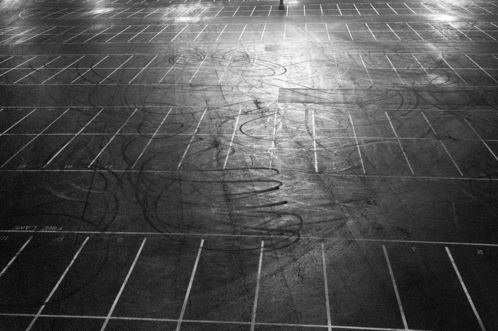 As I walked to my car across the Korean War Veterans Bridge in downtown Nashville, the crazy tire patterns juxtaposed against the orderly parking lines immediately reminded me of the structured disorder of modern artists like Miro and Jackson Pollock, and amused picturing who made these tracks and if the police caught them. I was jealous, because it looked like they had a lot of fun. Through pre-visualization, I knew that I would be able to convert the photo to black and white and bring out the patterns through contrast. It seems like a good fit for my Signs and Wondering series